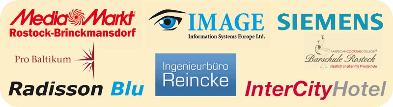 - Hotels in Rostock und Umgebung, u. a. "Intercity", "Radisson Blu" (Weiterbildung des Servicepersonals);